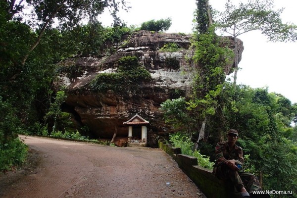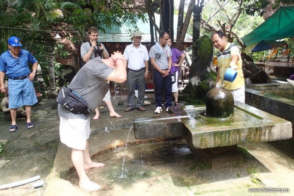 Это сооружение символизирует силу и плодородие. Квадратная чаша со сливом – это женское естество, ну а из него торчит - сами понимаете, мужское. На него льют воду, проходя через эту скульптурную композицию вода «заряжается», и вытекает из лотка. Следует набрать эту воду и умыться. Особо ретивые буддисты – мы наблюдали это в Ангкоре – её даже пьют. Мы ограничились омовением и направились к выходу.