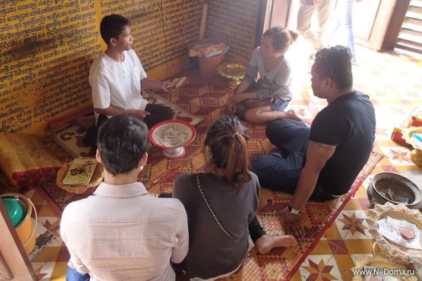 Происходит это таким образом. Вы берете стопку табличек, связанных в виде книжки. Кладете себе на голову и задумываете желание. Как правило не «короткое», а с установкой на длительный период – хотя если иметь возможность раз в неделю сюда наведываться, то можно наверное и почаще «сверять часы». Потом когда желание представилось достаточно четко, вы его видите, осязаете, вы втыкаете закладку между табличек. Ясновидящий раскрывает таблички на закладке и читает. Расскажу как это было у меня. Я загадал, сделал закладку передал ему. Краем глаза увидел, что на табличке было написано только три слова на кхмерском. Он начал говорить и говорил минут пять! Я хотел, чтобы Лаки переводил сразу, но он то ли не смог синхронно переводить, то ли нельзя было перебивать, но знаком он показал, что переведет после. Мы вышли из храма и Лаки перевел. Его английского хватило на два-три предложения, но и они меня ошарашили! Ясновидящий видел меня первый раз в жизни. Но в точности определил мою цель (она была только моя, не применима к другому человеку), что я задумал и дал совет как этого достичь. То, что было сказано, нельзя было посоветовать другому. Только толмач подвел - Лаки не смог перевести всего, что он сказал - ведь он говорил довольно долго, видимо была еще важная информация. Я шел озадаченный.