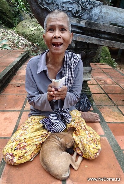 Перед входом в монастырь обязательно нужно купить… немного денег! Мелочи по 100 риелей – одна пачка 2,5 доллара на раздачу подаяний. Подаяния раздавать нужно от души, да и как пройти мимо?