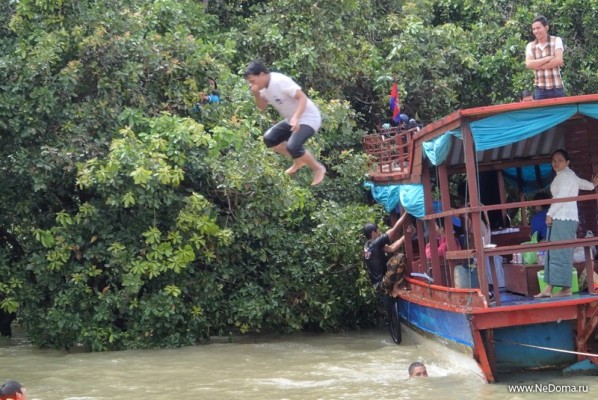 Сок со бай, дитя Тонлесапа! Плывем дальше. Затопленный лес, по которому катают немногочисленных туристов Развлекуха местных - прыжки в воду (если засмотришься – будут требовать плату за аттракцион).