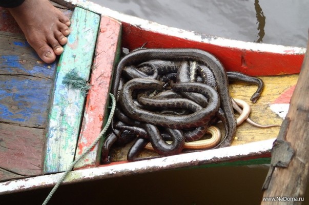 Чня-ньня! Что значит "очень вкусно". Особенно с их острым соусом (не прохококом!). Пока перекусывали к дому причалила лодка с ингредиентами праздничного обеда. Весьма впечатлительно. Слабонервных прошу не смотреть!
