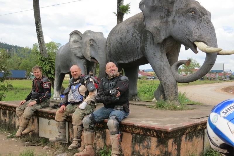 Завтрак, чай на дорогу, недолгие проводы - и мы снова в пути. Кампот провинциальный город, но в нем есть небольшой аэропорт и морской порт. А еще, здесь выращивают знаменитый на весь мир кампотский перец – удивительно ароматный, пряный и жгучий одновременно (привез домой, жаль мало). Но смотреть здесь нечего, и мы едем к следующему пункту. Этот день придется ехать по дорогам общего пользования, разного значения и, соответственно, качества. Забегая вперед скажу, что если на проселках покрываешься ровным слоем красноватой грязи, что вполне естественно, то быть облитым грязной жижей в харю на «федералке» совсем не комильфо… Но мы дорог не выбираем - наша цель опять нацпарк Рием, шикарный берег Сиамского залива. Отъехав от Кампота, смотрим на Слоновьи горы, которые так впечатлили вчера. Они опять в облаках, видимо там снова идет дождь. Вы можете представить себе 5000 мм осадков в год? Приезжайте на Бокор - представите! Дороги описывать особо нечего, как и фотографировать. Единственно, поскольку вживую диких слонов мы не увидели, пришлось сфотографироваться с неживыми.