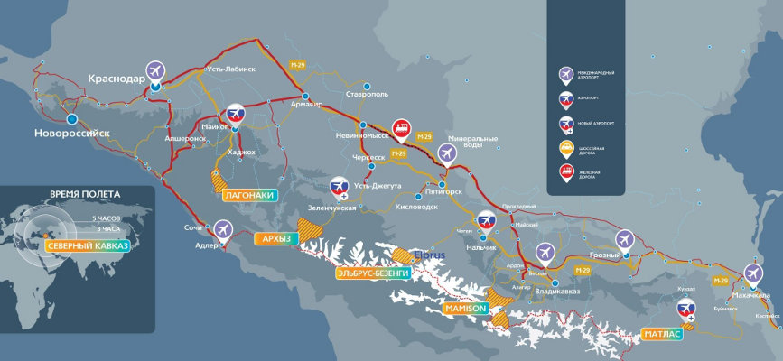 Как мы уже писали в многочисленных новостях, в рамках проекта развития северокавказского региона, к 2025 году на юге России планируется построить и запустить сеть горнолыжных курортов мирового класса: Лагонаки (Краснодарский край, Адыгея), Архыз (Карачаево-Черкесия), Эльбрус-Безенги (Кабардино-Балкария), Мамисон (Северная Осетия), Матлас (Дагестан), Цори и Армхи (Ингушетия).