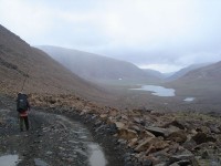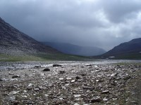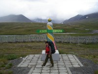 День 1. Прибываем на станцию Полярный Урал в 5 часов дня по местному времени, выгружаемся, и поезд оставляет нас одних наедине с тундрой. Во всех интернет-отчетах говорится об огромном количестве туристов, путешествующих по этому району. Однако обещанных толп туристов в районе станции обнаружить так и не удалось. Пройдя вдоль путей метров 500, дошли до культового знака, без которого не обходится ни один фотоотчет о Полярном Урале, обозначающего границу Европы и Азии, границу Республики Коми и ЯНАО. За этим столбом начинается погранзона, но войск ФСБ и колючей проволоки в зоне замечено не было. Так что пропуск в погранзону нам не понадобился ни там, ни на протяжении всего путешествия. С этого места хорошо просматривается долина р. Собь, куда лежит наш путь. И долина эта погодой не радует. Около станции нормальных мест для стоянки нет, мокрая тундра и болота, да и все видно как на ладони, поэтому решаем идти до озера Собского, что было запланировано на следующий день. Перешли по камням р. Собь и двинулись по тундре в направлении вездеходной дороги, идущей из бывшего пос. Полярный (110 км.) вверх по долине р. Собь. Камни в местных речках очень скользкие из-за каких-то водорослей, поэтому бродить по ним достаточно непросто. Тут очень сильно пригождаются треккинговые палки. В этой местности палки мне показались более удобными, чем альпеншток. Впрочем, альпенштоки тут и не растут. Первые 30 минут шли по сухому. Потом начался дождь, который с небольшими перерывами шел 3 дня. Комаров и мошки немеряно. Тут уж не зевать! В рот залетит! Пробравшись через болота в тундре, примерно через 6 км. вышли на вездеходку. Идти стало заметно веселее. Дорога иногда уходит в болото, иногда бродит не очень глубокие ручьи, но в целом она в довольно хорошем состоянии. Часов через 5 движения доходим до оз. Собское, откуда вытекает р. Собь. Мест для стоянки у озера немного, кругом камни, но нам удалось найти небольшую площадку метрах в 200 от озера.. Под дождем поставили палатку. Вылазить на улицу в такую погоду совершенно не хочется, поэтому готовим ужин под тентом. За первый день мы прошли 12 км. День 2. Ночью, в 4 часа выхожу из палатки по делам и о, чудо! Небо очистилось. Светло! Полярный день, однако! Выходим часов в 10 утра. Сегодня нам нужно пройти перевал Собский и подойти к началу подъема на перевал Геологов на плато Енгаю. Из-за небольшого перепада высот, наличия хорошей вездеходной дороги и ветра в спину взойти на перевал не составило большого труда. Если бы не дорога, передвигаться по старым моренам, сложенным из здоровенных камней, было бы очень непросто. С перевала открывается вид на оз. Собское и озеро Макар-Рузь. Эта зима на Полярном Урале выдалась необычно снежной, а лето прохладным, поэтому в горах необычно много снежников. Дорога по долинам рек Собь и Макар-Рузь из поселка Полярный пробивалась геологами при разведке месторождений хромитовых руд. Сейчас, после постройки рудника на плато Енгаю, свою актуальность она потеряла, однако до сих пор размечена вешками и проходима для гусенечной и тяжелой колесной техники. По ней местное население ездит в долины ручьев за золотым корнем, ведется заброска на вездеходах сплавщиков из поселка Полярный в Семиречье. Нам нужно найти ответвление от этой дороги налево, в гору, к руднику на плато Енгаю. Проходим ответвление, издалека напоми