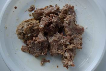 Предлагаем вашему вниманию тест тушенки - культового продукта для любого человека, покидающего родной офисный стол и кресло ради дальних странствий. Для начала немного теории из области тушенковарения, которая может помочь при выборе самого главного продукта питания туриста. Про ГОСТ и ТУ Тушенка из говядины выпускается исключительно по ГОСТ 5284-84 и бывает высшего и первого сорта. Рецептура одинакова, только тушенка высшего сорта изготавливается из мяса I категории, а тушенка первого сорта – из мяса II категории. Продукция, выпускаемая по ТУ, является мясными консервами и отличается от настоящей тушенки как по содержимому, так и по вкусу. Однако это вовсе не исключает ее использования в туристском меню. Кроме того, надпись на этикетке «ГОСТ 5284-84» говорит только о грамотности производителя, но никак не гарантирует качество внутреннего содержимого. Поэтому лучше купить банку мясных консервов знакомого производителя, чем банку гостовской тушенки неизвестного мясокомбината. Про упаковку и маркировку Как правило, тушенка выпускается в двух типах банок – высокая жестяная банка массой нетто 338 г и плоская алюминиевая либо жестяная массой нетто 325 г. Если на высокую банку этикетка нанесена литографическим способом, это говорит о том, что предприятие делает продукцию для МО (При хранении тушенки на складах на банки наносят специальную антикоррозионную смазку. На банку с бумажной этикеткой смазку не нанести). Для туриста более удобна тушенка в алюминиевой банке - она легче и пустая замечательно плавится в костре. На каждую банку механическим или литографическим способом нанесена маркировка, несущая информацию о дате изготовления, продукции и производителе. Например, нижняя строка маркировки Орской тушенки «101ВА12» читается так: 1 - первая смена, 01 - говядина тушеная, В - высший сорт (у первого сорта ничего не пишется), А – принадлежность комбината к мясной промышленности, 12 – код Орского мясокомбината. Продукцию, упакованную и промаркированную по-другому, следует выбирать с осторожностью. Про производителя Тушенка изготавливается повсеместно, но более качественный продукт стоит ожидать от производителей, расположенных в животноводческих районах России: Оренбургская, Челябинская области, Башкирия, Бурятия, Алтай и т. д. Им выгоднее использовать местное мясо или импортировать его из Монголии, чем везти кенгурятину из Австралии. Название мясокомбината тоже должно быть на слуху - от мелких кооперативов-однодневок качественную продукцию ожидать трудно. Вооружившись этой информацией, берем большую авоську и направляемся в ближайший магазин. А там сюрприз! Если продукция УМКК широко представлена везде, то выбор мясных консервов других производителей весьма невелик. Только великий и ужасный «Главпродукт» протянул свои щупальца по прилавкам всех магазинов, от «МЕТРО» до последнего сельпо. Так как заведомое гуано брать не хочется, выбираем в разных магазинах те крохи, что есть в продаже. Таким образом, для сравнения были отобраны все пять видов консервов из говядины «Уфимского мясоконсервного комбината», из которых только одна банка является, собственно, тушенкой, да и то не высшего, а первого сорта, а остальные – мясные консервы (они шли вне конкурса) и десять видов тушенки сторонних производителей. Вот такая тушенка, за исключение