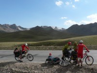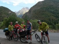 Главная цель путешествия - пройти маршрут высшей, шестой, категории сложности (согласно современной методике категорирования) по новому, для команды ProBike, району. При этом, не уйти в направление «пеших» велопоходов. Основная идея, которая витала в наших умах, - это попытаться пройти этот веломаршрут действительно в седле. Нитка маршрута: Кара-Балты - перевал Тео-Ашуу - Суусамыр - перевал Алабель - Токтогул - река Кара-Суу - перевал Каргыш - Нарынское водохранилище - Таш-Комыр - Жалалабат - перевал Сарыкыр-Казарман - перевал Кара-Гуа - Нарын - перевал Тон - озеро Иссык-Куль - Каракол - Чон-Сары-Ой - перевал Кок-Айрык - река Чонг-Кемин - перевал Кашкажол - Токмак ‒3 день (поезд). 02 августа 2008 г. Встретились в 19.00 у памятника на ж/д вокзале Екатеринбурга шесть подкрученных велосипедистов. Пятеро из уже состоявшейся велокоманды клуба Probike: - Феоктистов Павел – руководитель, медик; - Замятин Дмитрий – зам.руководителя, завхоз продуктовый, фотограф; - Екимов Роман – реммастер; - Гольтяков Алексей – видеооператор; - Корбут Данил – участник и примкнувший к ним житель Челябинска, Тимошин Игорь, – завхоз снаряженческий, GPS-трекописатель. Погрузка в поезд бабайского формирования с названием «Свердловск-Бишкек» произошла в пределах разумного. С учетом того, что помимо нашей группы, в него грузились еще две или три, собирающиеся «накрутить» свои походы по дружелюбной Киргизии. На удивление, основная масса велосипедов толком упакована не была, но проблем с проводниками не возникло. Видимо, массовость сказывается. Наш вагон оказался после капремонта: на окнах — стеклопакеты, чистенький такой. Помахали ручкой и в 20.05 отправились в наше путешествие. Остальное в поезде происходило как обычно: рассовывание вещей по вагону, еда, всякое питье и отбой на первый сон. ‒2 день (поезд). 03 августа 2008 г. Встали утром как кто пожелал, позавтракали и продолжили обычный железнодорожный быт. Ночью тревожили таможенники: ограничились, как всегда при выезде из России, только досмотром документов. Паша нас познакомил с единственной особой женского пола — талисманом Лосихой — мягкой игрушкой с симпатичной мордашкой. Сегодня началась раздача подарков и призов от спонсора, фирмы Discovery (г. Екатеринбург). Участникам, которые до этого не были обеспечены, были выданы ветрозащитные костюмы (анорак фирменной расцветки ProBike, черные штаны) и специально подготовленные к этому походу красные виндстопперные куртки, блещущие надписями «RUSSIA», «ProBike Team» и фамилией участника. С последними вышел казус: при вышивке фамилий перепутали размеры и четверо из шести участников остались в безымянных куртках - не будешь же ходить в куртке с чужой фамилией (что подумают спасатели когда найдут???). Поэтому пришлось применить вышивки второго нашего спонсора - фирмы «Альпиндустрия-Екатеринбург», предоставившей бивуачное снаряжение, и прикрыть фамилии. Очень, очень жаль… Весь день провели в неправедных поступках: ели и пили. Пиво в поезде стоит 50 рублей, водка - 150 рублей (все цены за 0,5 л). Обсудили нитку маршрута и ожидающиеся ключевые препятствия в виде хоженых и нехоженых перевалов и долин. В столице Казахстана, городе Астана, погода так себе - ветерок, пасмурно. Фотографировались командой. На удивление, для августа на улице не жарко, соответственно, в поезде - тоже. В видели интересный люксовый поезд «Астана–А