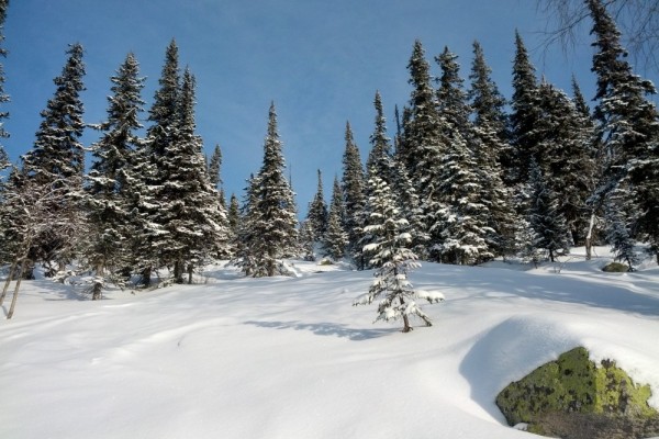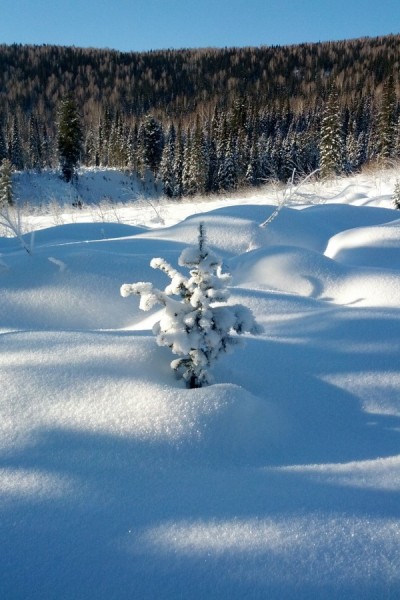 Но... Все опасения были напрасными. Получилось на редкость отменное лесное каталово с пожиранием огромного количества целины длиной аж в 9 дней, пока у всех не начали дрожать ноги от усталости. Рельеф позволяет чередовать прокаты по снежным полям с более крутыми участками, позволяя немного отдыхать без остановки (катаясь один, я почти не делал пауз).
