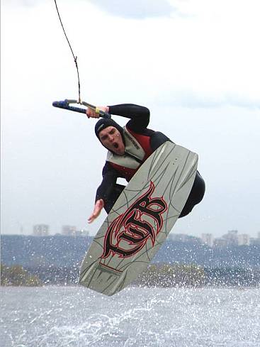 Единственное событие, которое может помешать вейкбордисту встать на воду – сильный ветер, создающий большие волны на поверхности воды или милицейский патруль, который может просто всех пригласить к себе в гости. Но в нашем случае стражи порядка решили не всмешиваться в групповое сумасшествие. Ветер же наоборот, решил не сдаваться, и показал себя во всей красе. В такой ситуации выполнение трюков крайне осложняется и даже становится опасным. Поэтому в середине дня пришлось подойти к берегу, и на несколько часов отложить катания на вейке. Но необыкновенные приключения в Ломоносовской акватории с увеличением силы ветра только приобрели новый виток. Кататься на вейке в ветер плохо, но в нашем многогранном мире просто должно существовать что-то такое, на чем в ветер можно просто «офигенно» катать! Этим «спасательным кругом» для нас стал кайт.