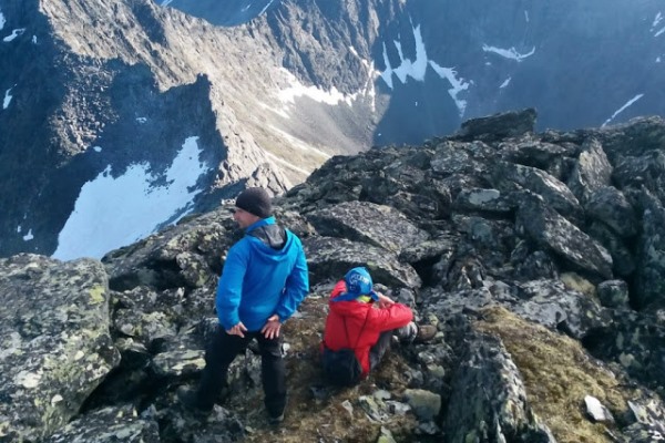 Дневка с посещением Манараги. Прямо от нашего лагеря началась тропинка в крайнему зубцу. Мы набрали немного воды, продукты и вещи для обеда и двинулись, подъем сначала по лесу, затем по травянистому склону, дальше курумы. Полюбовались видами, хорошо виден массив Колокольни, западные части Приполярного. Много очень табличек. Набор высоты около 1100 метров, сброс аналогично.