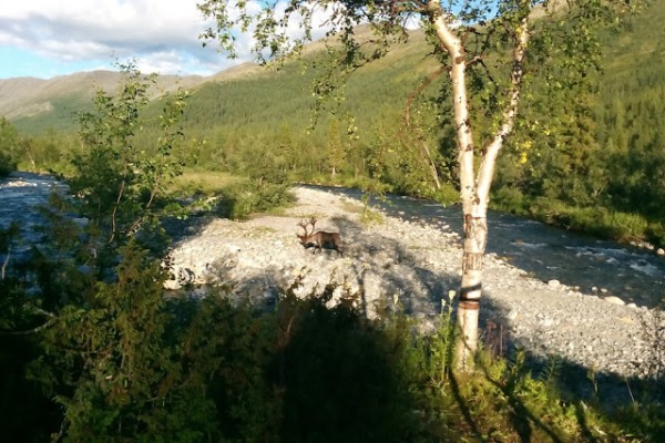 Переправились через реку. Она казалась обманчиво мелкой, но без обуви переходить было неприятно. В гости к нам заглянул шикарный упитанный олень.