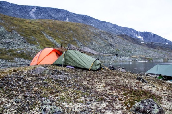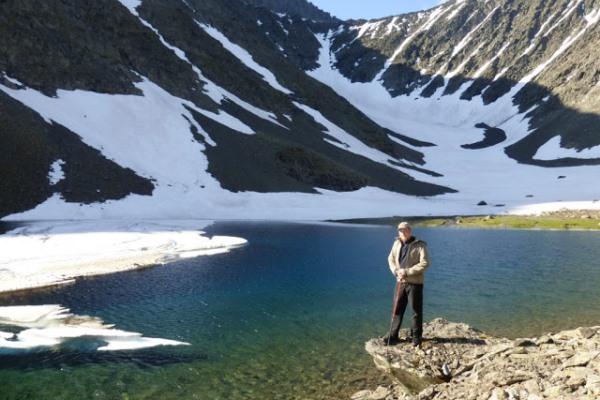 По пути от ручья к нам подбежал дядька. Мы остановились, поздоровались, рассказали про маршрут. Он с квадратными глазами начал говорить, что перевал к голубому озером для нас непроходим. Там камни ВО, много снега, без веревок не сунутся никак (на самом деле 1б перевальчик, не больше), а у нас девушки и вообще. Предлагал изменить маршрут и через перевал Некрещеный обойти Карпинского. Ладно, пошли дальше. Дошли до озера верхние Балбанты (в простонародье Восьмерка) и там заночевали. Тент, палатки, ужин, спать.