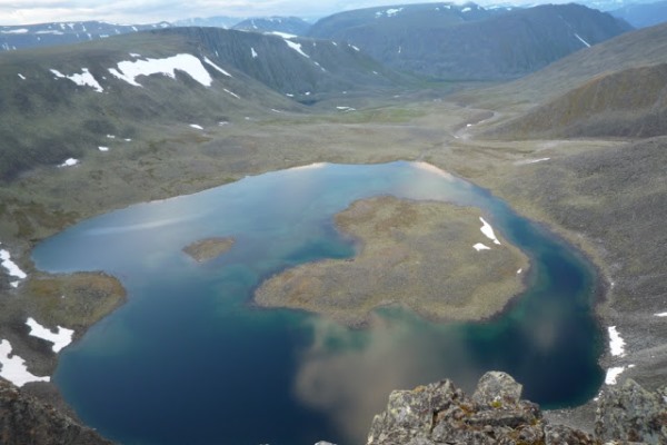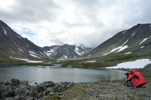 Нас высадили в районе вертолетной площадки рядом с базой "Желанная", на берегу озера Большие Балбанты. Женя пытался договорится о дозаброске до Малых Балбанто в(там 7 км по болоту), но водитель сказал, что запрещают. Погода была пасмурная, но терпимая. Природа шикарная, суровые горы, не поросшие тайгой. Восторг.