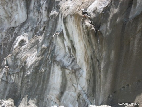 Зрелище было больше неожиданным, чем красивым: грязный ледяной откос, покрытый камнями, что падают с боков ущелья, из-под него вытекает река; но потрогать своими ручонками эту махину очень хотелось, несмотря на то, что возвышалась она надо мной на добрые пять метров. И вот, когда мои пальцы дотянулись до ледяной стенки, чтобы сразу стать грязными, я услышала окрик: «Не подходите близко! Сверху могут упасть камни». Голос был настолько командным, что я сначала отскочила, а уже потом посмотрела на говорившего.
