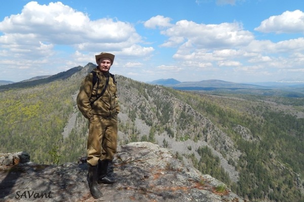 Пока лез на гору, приметил высыпки своих любимых черных сланцев. Взял образец, точку в навигатор забил. Думал я просто на гору гулять пошёл, а теперь получается, что в экспедицию поехал! =)