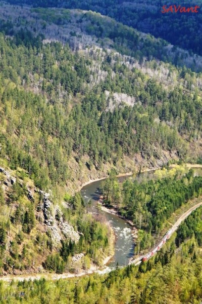 ![]() С каждой минутой сзади виды все красивее и красивее. Короткая электричка "Кукушка" и водники, преодолевающие свои пороги.