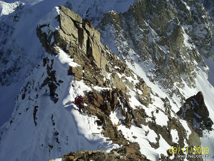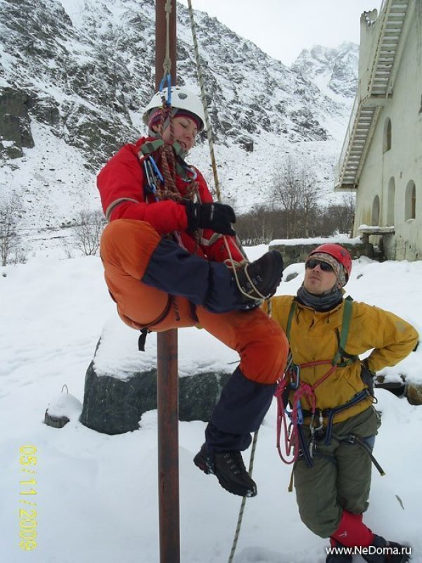 Все началось тогда, когда мы поняли, что злобные начальники не дадут нам попасть в Изгааиль, и надо искать другие варианты. Глава 1. Дорога Как точно подметил Maxi, мое «шило в заднем месте» и, по совместительству, любимая, рыская по просторам российского Интернета, набрела на новость об открытии первой смены в альплагере «Безенги». Решение было принять единогласно и оперативно. Оставалось совсем немного: добиться-таки отпуска и доукомплектоваться по возможности экипировкой. Уфа потрясала своими богатыми предложениями. Мы нашли целые ОДНИ!!! ботинки с рантами под крепления кошек! В мегамагазине «Триал-спорт»! Забегая вперед скажу: то, что из Башкирии альпинистов (кроме нас теперь) в Безенги, увы, не знают — вполне логично. Приятно порадовал магазин Bask, что в торговом комплексе «Экватор» на Ленина. Заказали у них два зимних спальника с условием, что доставят нам их в течение десяти дней. Магазин свое обещание сдержал с честью. Спасибо. Мы не замерзли. Итак, к 29 октября 2009 года мы подошли с отпускными и билетами на направления Уфа – Самара, Самара - Пятигорск в кармане, собранными рюкзаками и температурой 38,5 у меня… А делать нечего. Рубикон пройден. Ехать надо. Утро в Самаре встретило нас дождем, холодным ветром и ознобом. Гонка по магазинам, покупки, покупки, покупки… Приятная вечерняя прохлада пива «На дне», и укоризненный взгляд Ани: «Ты же болеешь.» Но как удержаться?.. Едем дальше в Пятигорск. Мы лежим на верхних полках, аки два ленивца, слушаем стук колес, ждем Котельниково, а на «НеДоме» рубятся за честных ментов и собирают аптечку. Это все далеко и нереально… Мы полны мыслей, фантазий и переживаний. Как оно там будет? Все ново и интересно. Пятигорск встречает нас дождиком. Перебираемся в Нальчик. На такси мчимся к месту сбора. И даже не опаздываем! На часах 15.00, и мы у ворот офиса альплагеря «Безенги». Глава 2. «Безенги». Первые впечатления Ворота альплагеря гостеприимно закрыты. Почему-то не слышно шума первой зимней смены. Пройдя черным ходом, мы застаем замдиректора лагеря «за работой». Разбудив его, узнаем, что альпсмена в нашем лице прибыла, и через 15 минут мы выдвигаемся в лагерь. Грустно. «Ниву» бросает на поворотах, из снежной темноты фары вырывают неожиданные спуски и подъемы. По краям дороги чернеет бездна. Какое-то место, расположенное на уровне сиденья, подсказывает, что не всегда это - просто ночная тьма. Сижу и ругаю себя за то, что не пристегнулся, а теперь, типа, стремно. Проезжаем пограничную заставу — благо, пропуска администрацией альплагеря сделаны заранее. Через 30 минут мы в «Безенги». Снега выпало уже сантиметров десять. Хорошее начало. Говорят, до этого дня месяц стояла ясная солнечная погода… Нас встречает суровый бородатый горец Алим. Короткие приветствия, и мы проходим в «апартаменты». Очень даже ничего: большой холл, комната, душ, туалет. Разложив вещи, идем на ужин. Большая тарелка с бараниной способствует поднятию настроения. После ужина - душ в «домике сторожей» (уж не знаю, как он называется), несколько рюмок водки «за приезд» с Алимом и еще одним, в два раза суровее, горцем Адельби и баиньки. Завтра - первый день нашей новой альпинистской судьбы. Глава 3. Тяжело в учении - легко в бою Второго ноября, познакомившись с инструктором и дополучив недостающее снаряжение, мы приступили к занятиям по альпинизму. Весь день вяз