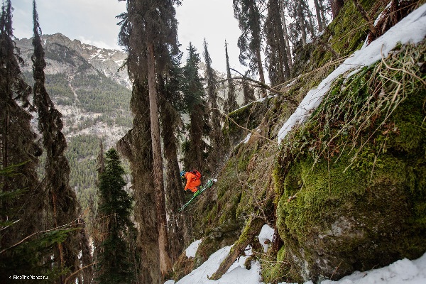 В этом сезоне на Домбае аномально бесснежный год, и поэтому в поисках интересных линий и свежего снегам мы часами проводили в походах по гребням и циркам ущелья Гоначхир. А после катания нам приходилось очень долго выходить пешком вниз по крутым лесным склонам. Мне это было невероятно тяжело по причине недолеченной травмы колена. И также запомнилось, что все нас очень радушно встречали на Домбае.