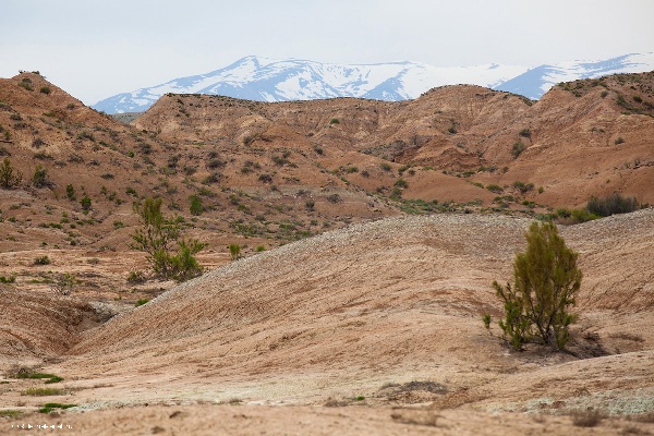 В этом году в середине мая в Алматы и окрестностях температура поднималась днем до +30 градусов, и отправившись утром в пустыню было трудно осознавать, что еще вчера вечером в горах на Космостанции мы катались по снегу и провожали солнце за горизонт кутаясь во флиски и пуховки. Стоит только немного выбраться на машине из двухмиллионного Алматы как попадаешь в довольно дикие места, вокруг начинается то ли степь, то ли пустыня с небольшим количеством населенных пунктов. Дорога в сторону Алтын-Эмель ведет на восток от Алматы вдоль снежных гор Заилийского и далее Джунгарского Алатау и их отрогов.
