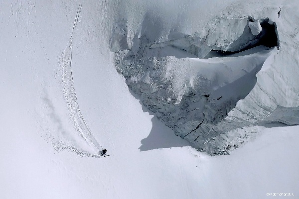 Поднимаясь наверх, ты всю дорогу и на каждом привале рассматриваешь свою задуманную линию спуска, запоминаешь рельеф и прокручиваешь в голове каждое движение. Выходишь на старт на вершине или гребне и зачастую видишь перед собой только линию перегиба склона на леднике, ни ориентиров ни хоть какой-нибудь зацепочки… Ладно, разберемся по ситуации. «Операторы готовы? Райдер готов? Три, Два, Один, поехали!»