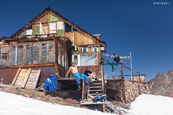 В городе здорово, но мы любим горы! Сделав передышку и попутешествовав, мы снова выдвинулись в горы, забросились вертолетом на научную базу «Т1» у подножия ледника Туюксу на высоте 3500 метров над уровнем моря – гляциологическую станцию алматинского института географии. Эта станция одна из старейших в мире, а сам ледник Туюксу один из самых изучаемых на планете, непрерывные исследования здесь ведутся учеными уже более 50 лет.