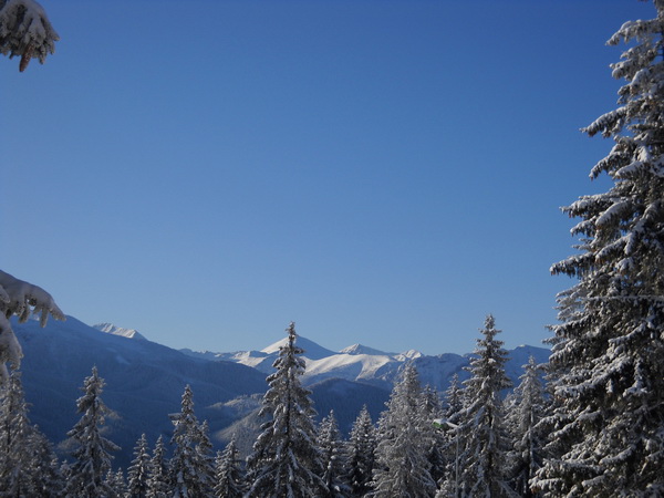 Отличный 3-хместный номер в мансарде. Нас сразу пригласили на ужин, и после него мы побрели гулять по местному Бродвею - Круповке. Все очень миленько, чистенько, уютно и ни на минуту нельзя было бы забыть, что ты в Европе, если б не русская речь отовсюду. Наших там больше, чем в Абзаково. Практически все отдыхающие - русские. Нам это объяснили тем, что рождественские каникулы в остальных странах уже кончились, а у нас еще только начались. Городишко небольшой, но очень красивый. Застроен в основном 2-3-х этажными частными домами и пансионатами, но кое-где попадаются и пятиэтажки, они, правда, совсем не портят общего вида. Горнолыжек в городе очень много. Как в самом городе, так и в его окрестностях. Одних учебных центров мы насчитали штук семь: Анталувка, Пардалувка, Козинец, Гигант, Будзовски Верх, Костелиско и что-то еще. Ну и остальных еще: Каспровы Верх, Губалувка, Поляна Шимошкова, Буторовы Верх, Носаль, Саламандра, Харенда. И, конечно, Бялка Татрянска в 20 км от Закопане… ну и еще там, говорят, что-то есть. Квартиры, стоят как в Уфе. С работой плохо. Живут за счет туристов. Еда. Полно ресторанчиков. Везде вкусно и уютно. Если ехать через турагенство, то советую брать пакет тур без ужина. 4 января. Кататься! Мы пошли на Губаловку. Т.к. городишко - милипизерный, было решено идти до нее пешком. Сразу на себя все нацепили, ссыпались по Круповке вниз, распугивая машинки и обслуживающий персонал магазинчиков и ресторанчиков. Утром она выглядит попрозаичнее, но все равно очень миленько.