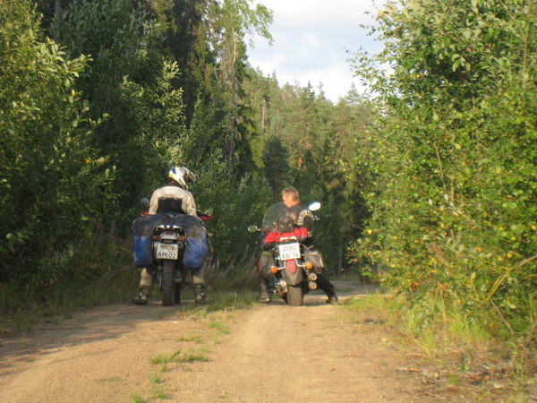 На заправке под Пряжей познакомились с Колей на литровом Драгстаре из Ярославля. Ему выпали пару дней выходных, и он решил прокатиться по Карелии. Цели у него не было, и ему понравилась наша идея поехать в Рускеалу на мраморные каньоны, так что он присоединился к нам.