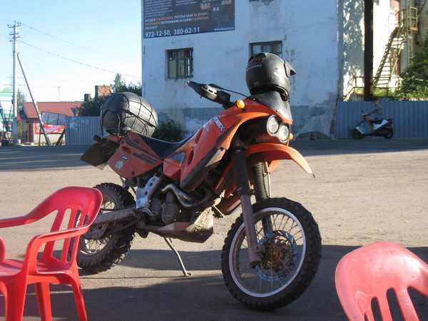 В Петрозаводске нас встретил Женя. Проводил до клубного гаража, где мы не откладывая провели небольшое ТО: Лёха заменил масло, а я подтянул и смазал цепь.