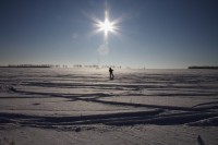 Итак старт, рывок, и я весело тащусь за кайтом, нагребая перед собой огромную кучу снега, не забывая набить им карманы и припрятав изрядную порцию за пазухой. Кое-как положил кайт, встал, огляделся, вижу суровые лица райдеров и недобрые взгляды, которые они бросают в мою сторону. Все понятно без слов - снега и так мало, так этот гад еще с собой унести пытается. Пардон, господа, я ненарочно, сейчас все верну. Вытряхиваю из куртки и свитера кубометр снега, отлично, фундамент замка положен. Еще несколько стартов и, посчитав синяки и шишки, прикинув в уме оставшийся процент здоровья, повесив уши, бреду к Косте. «Сенсей» - говорю- «забери Джина, однако, пока моя совсем инвалидом не сделался, дай, что-нибудь ,такое же тормозное как я». "Ну,- говорит Костя - такого же найти навряд ли получится. Но "ЁЁ" как раз освободился, пока Руслан в себя приходит после первых стартов на лыжах." Ого, Руслан уже поехал, во могучий дух! Беру Jo-Jo, начинаю уражняться. Действительно, другой характер. Что-то начинает получаться, надеть лыжи тем не менее рассудок не советует, хотя очень хочется. Пора домой, сдаю снарягу и двигаюсь до дома, настроение так себе, теперь до следующих выходных ждать.