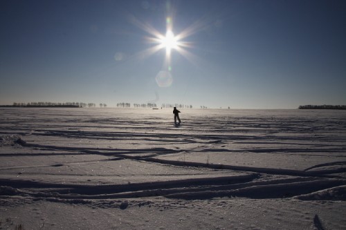 Снова теория, занятия на тренажере. Простая весч - планка, привязанная к машине, но помогает понять как упиратся и что к чему. Выходим в поле. "Готов? Готов! Старт." Хрясь, бум, бамс …. Бодидраг - моя стихия! Лыжнег - это звучит гордо! Вспомнил я напутствие Кости перед стартом, извлекая себя из мешанины снега, лыж, страховок и хлама высыпавшегося из карманов. Нафига мне все это надо? Есть более простые и бюджетные способы угробить себя. Но если с моторными реакциями у меня проблемы есть, то с упрямством все впорядке! Перекурив полчасика, при поддержке Руслана (пока не видит Костя), еще раз стартую и … О чудо, я поехал! Давненько я так не радовался, кайт над головой, я качусь по полю. Ура! Это конечно не полноценное катание, но главное я сделал - я поехал, а остальное приложится.