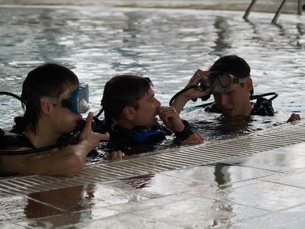 А самые активные и неугомонные вместе с инструктором КМАС** Эдуардом Якушевым, приехавшим в «Абзаково» из Египта, участвовали в мастер-классе по дайвингу. В аквапарке «Аквариум» он сначала теоретически, а потом и в воде на практике учил парней и девчонок искусству подводного плаванья. Рассекая водную гладь в специальной экипировке, за 2 часа «водных процедур» он обучил-таки их основам дайвинга. Многих опробовавших на себе этот тренинг, настолько впечатлили открывшиеся пространственные возможности воды, что они изъявили желание продолжить тренировки, но только уже не в бассейне, а где-нибудь близ Красного моря.