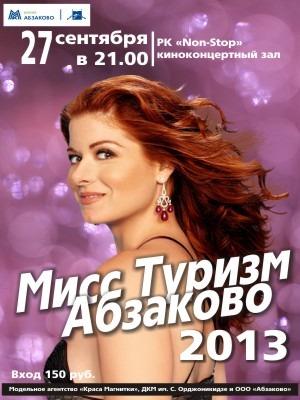1V этап - финал конкурса. Финал состоится 27 сентября 2013 года. По итогам выступления участниц жюри конкурса определит обладательниц титулов «Мисс Туризма Абзаково-2013», «Вице-мисс Абзаково-2013», а также победительниц дополнительных номинаций, которые будут оглашаться во время финала.
