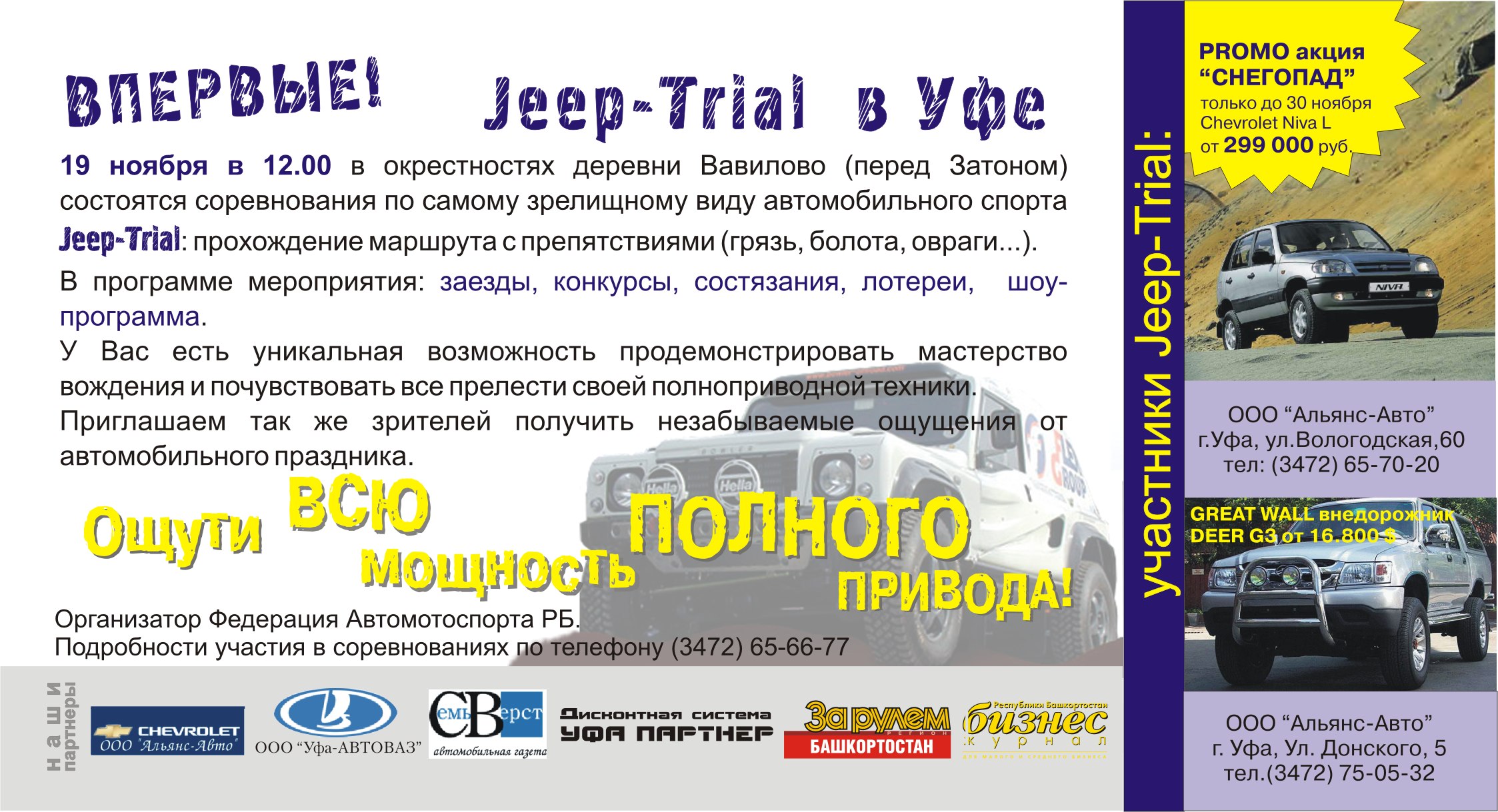19 ноября 2005г Федерация АВТОМОТОСПОРТА РБ проводит любительские соревнования по джип-триалу "ЭКСТРИМ-ТРИАЛ 2005".
