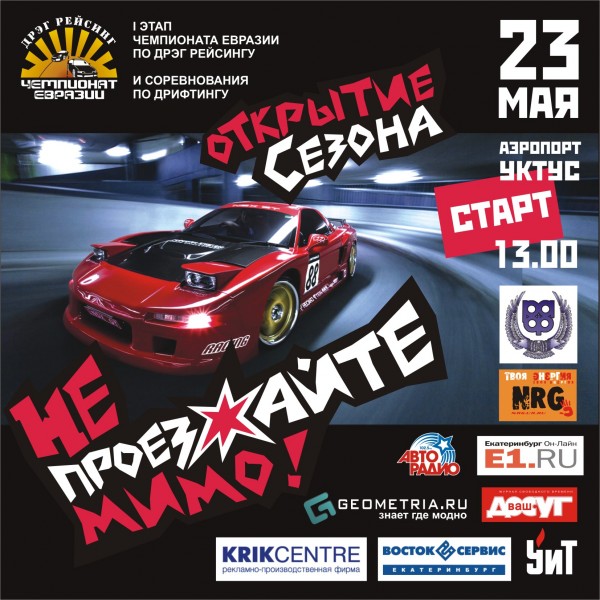 23 мая 2009 года на ВПП аэродрома «УКТУС» (г. Екатеринбург) проводится I этап Чемпионата Евразии по Дрэг Рейсингу 2009 и соревнования по Дрифтингу.
