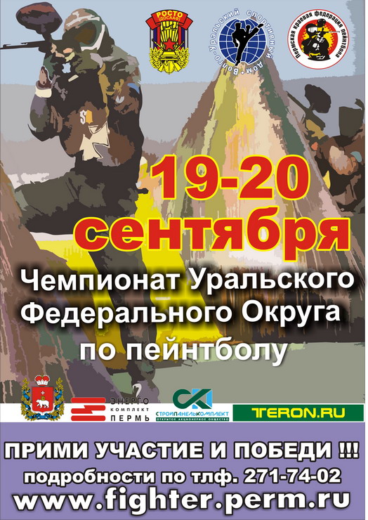 19 сентября на стадионе "Авангард" (г. Пермь) пройдет Чемпионат Уральского Федерального Округа по пейнтболу.