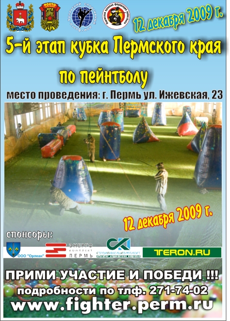 12 декабря на площадке клуба "Файтер" проводится V этап Кубка Пермского края по пэйнтболу.