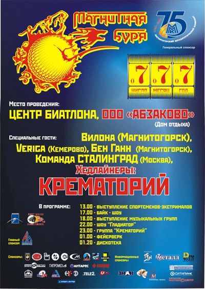 «Магнитная буря» – фестиваль нового формата. Он проводится ежегодно и уже вышел на всероссийский уровень. Чем Магнитка может удивить Россию? Конечно, есть в стране такие раскрученные проекты, как «Крылья», «НАШЕствие», «Грушинский», «Байк-шоу» – на один съезжаются любители рока, на другой – байкеры, на третий – экстремалы… Но чтобы все вместе?