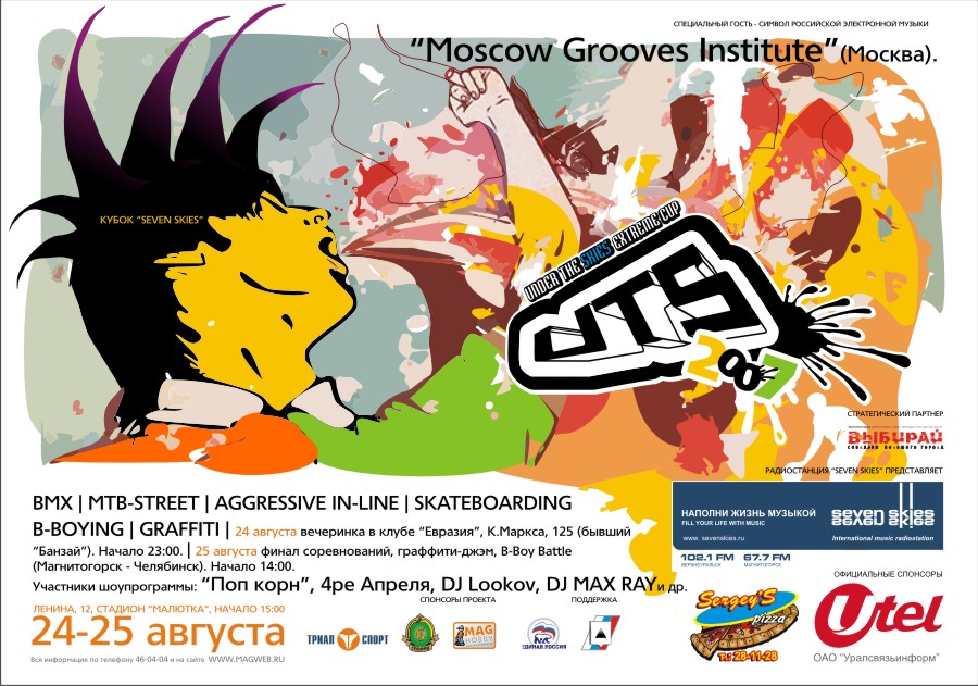 Фестиваль молодёжной культуры и экстремальных видов спорта «Under the skies» (UTS-2007) пройдет в Магнитогорске 24 и 25 августа. На стадионе «Малютка» уже во второй раз соберутся музыканты и спортсмены со всего уральского региона. Фестиваль будет проходить по 4 дисциплинам: скейтбординг, маунтинбайкинг, BМХ и aggressive in-line. Участников и зрителей фестиваля ожидает множество сюрпризов.