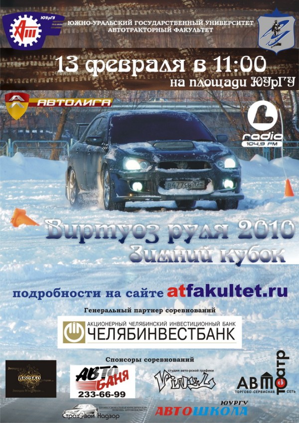 13 февраля 2010 года в Челябинске, на площади перед перед главным корпусом ЮУрГУ, автотракторный факультет организует и проводит Открытое первенство по автомногоборью.