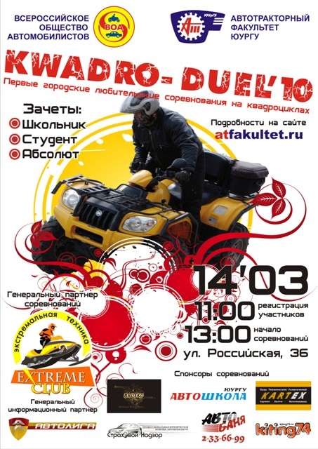 В Челябинске 14 марта на Автокатке74 состоятся первые городские любительские соревнования на квадроциклах.