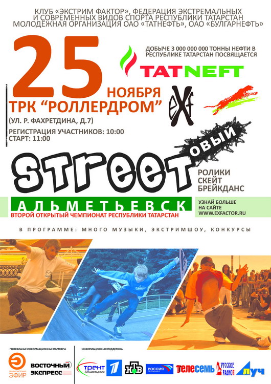 Второй Открытый Чемпионат Татарстана по стриту на роликах и скейте «Street-овый Альметьевск #2»