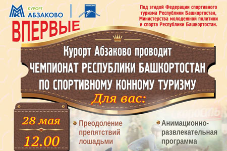 В Абзаково с 27 по 29 мая 2016 г. будет проходить Чемпионат Республики Башкортостан по спортивному конному туризму.