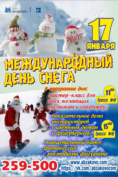 Эта знаменательная дата появилась благодаря энтузиазму Международной федерации лыжного спорта только в 2012 году. Прежде всего, День снега предназначен для детей и юношества. По мнению организаторов праздника, торжественные, полные веселья и азарта мероприятия помогут будущим взрослым поколениям преодолеть этот барьер, задержаться в детстве и юности по доброй воле, получить незабываемые впечатления от радости общения с одним из величайших явлений природы.