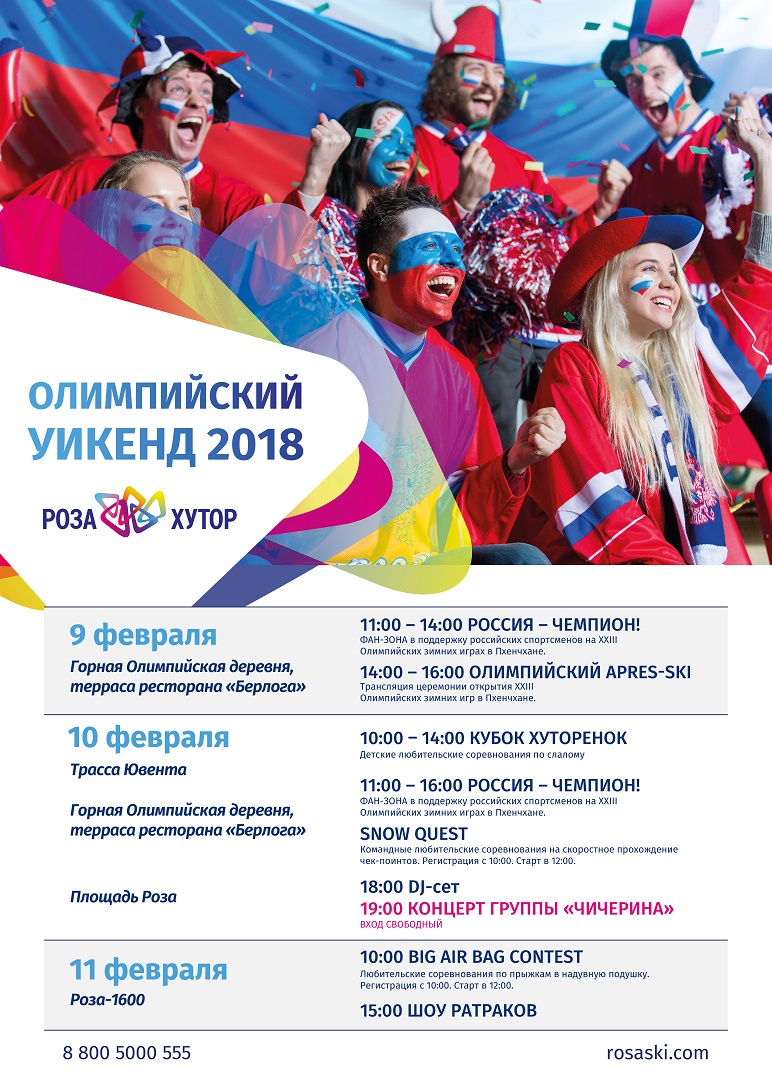 С 9 по 11 февраля на горном курорте «Роза Хутор» состоится традиционный Олимпийский уикенд.