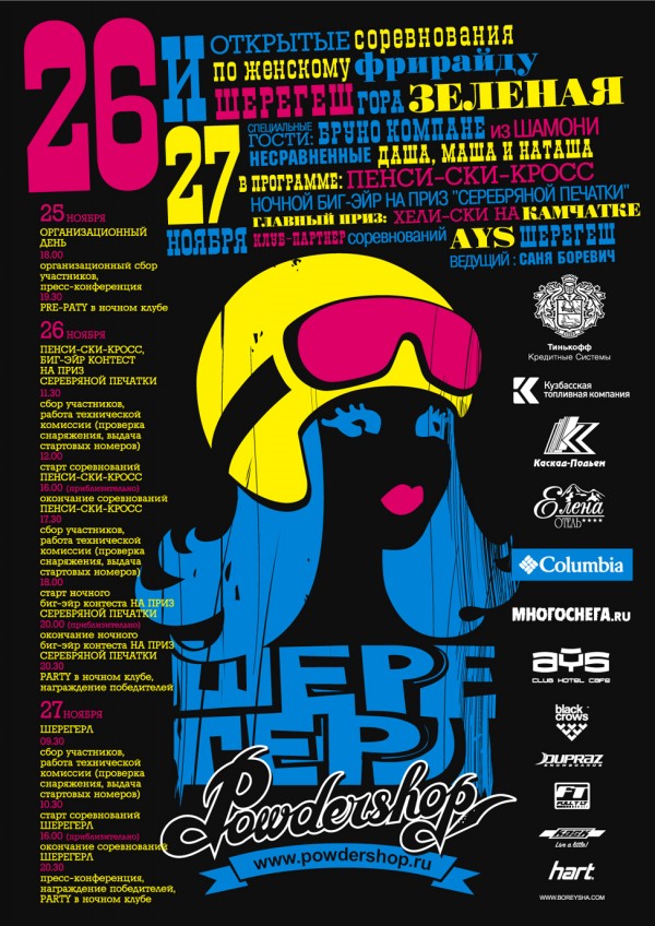 Компания POWDERSHOP планирует проведение соревнований по экстремальным горнолыжным дисциплинам на курорте Шерегеш (г.Зеленая, пос.Таштагол, Кемеровская область, в непосредственной близости от г.Новокузнецк) на неделе с 22 по 28 ноября 2010г.