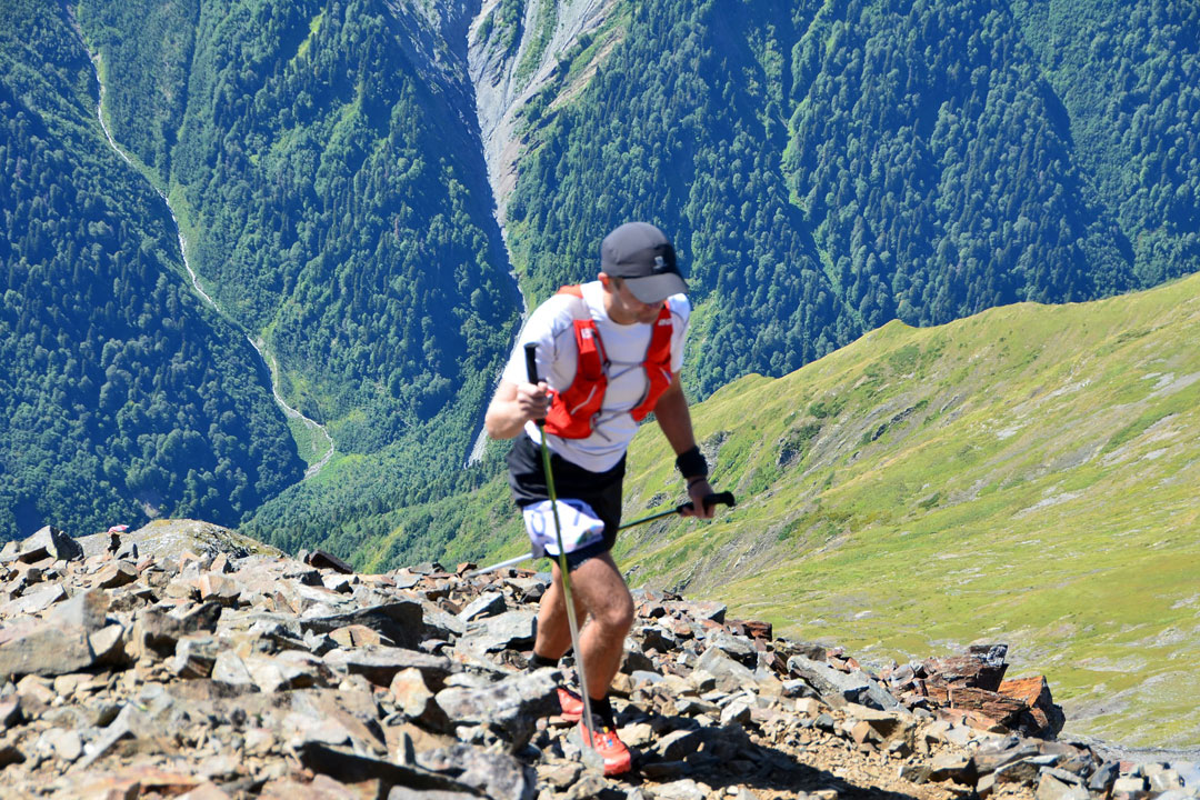 Протяжённость до финиша на вершине пик Бзерпи - 5,5 км, перепад высот - 900м, общая протяжённость - 11км.