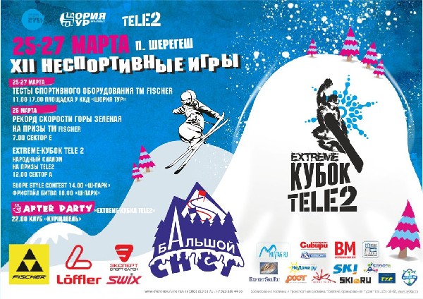 На XII фестивале «БАльшой снег. Неспортивные игры» в Шерегеше впервые определят победителей «Extreme-Кубка Tele2» в дисциплине Народный слалом и Фристайл-битве лыжников и сноубордистов.