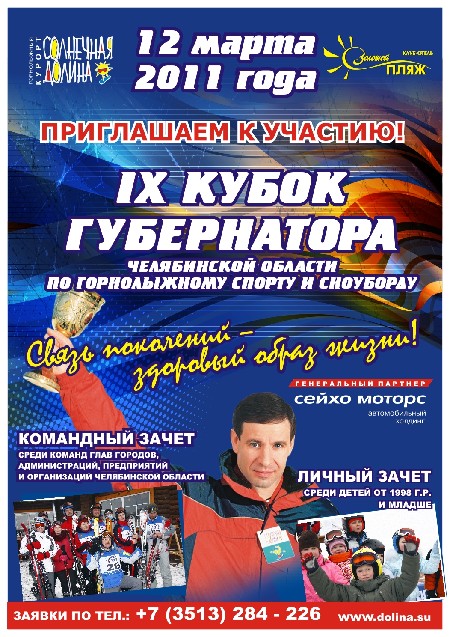 12 марта 2011 года горнолыжный курорт «Солнечная долина» при поддержке Правительства Челябинской области и Министерства по физической культуре спорту и туризму Челябинской области и автомобильного холдинга СЕЙХО МОТОРС проводит IX Всероссийский фестиваль по горнолыжному спорту и сноуборду «Кубок Губернатора Челябинской области».