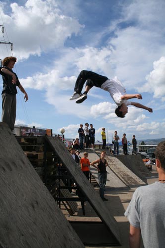 В течение всего мероприятия (в субботу), в паузах между соревнованиями в экстремальных дисциплинах, зрители увидят показательные выступления паркур-команды, брейк-данс команд.