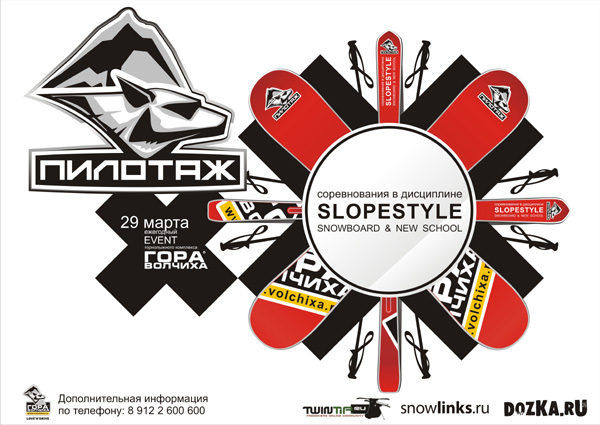 29 Марта 2008 года на ГЛК «Гора Волчиха» (40 км. от г.Екатеринбурга) состоится ежегодный EVENT -«ПИЛОТАЖ»! В программе event’а соревнования в дисциплине SlopeStyle(Snowboard & NewSchool)!