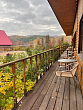 3. Бунгало - люкс (апартаменты). Это новый современный вид размещения. Каждое бунгало имеет свой собственный отдельный вход, персональную лыжную стойку. В гостиной и спальне по плазменному телевизору - кабельное ТВ (45 каналов), небольшая кухня в каждом бунгало оборудована холодильником, чайником, микроволновой печью, набором посуды. В ванной наборы полотенец и махровые тапочки. Только при проживании в бунгало допускается размещение собак, но в отдельном вольере.